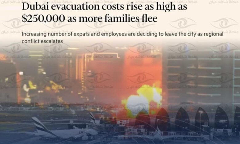 كشفت صحيفة فاينانشال تايمز عن ارتفاع تكاليف الهروب من دبي بسبب الأوضاع الأمنية التي تعيشها دولة الإمارات العربية المتحدة جراء الضربات الجوية التي تشنها إيران