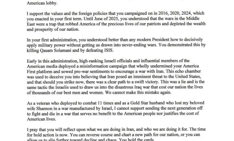 👈 (لا أستطيع أخلاقياً دعم هذه الحرب… لم يكن هناك تهديد حقيقي… وهذه الحرب فُرضت تحت ضغط)